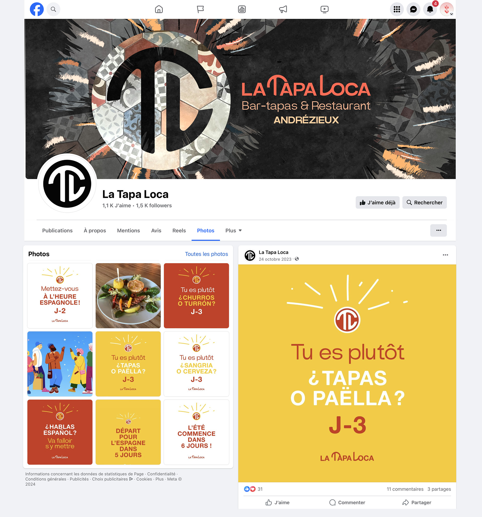 Une expérience enrichissante et une belle rencontre avec Jennyfer, Hugo et toute la famille qui nous ont fait confiance pour l'ouverture de leur restaurant bar à tapas... La Tapa loca est un endroit vivant et chaleureux à Andrézieux-Bouthéon. Direction artistique sur le projet global : conception du logo, de la charte graphique, de l'enseigne et de la signalétique, des dépliants, flyers, kakémonos..., habillage des réseaux sociaux, prises de vue photos et vidéo... Bref un gros coup de coeur !