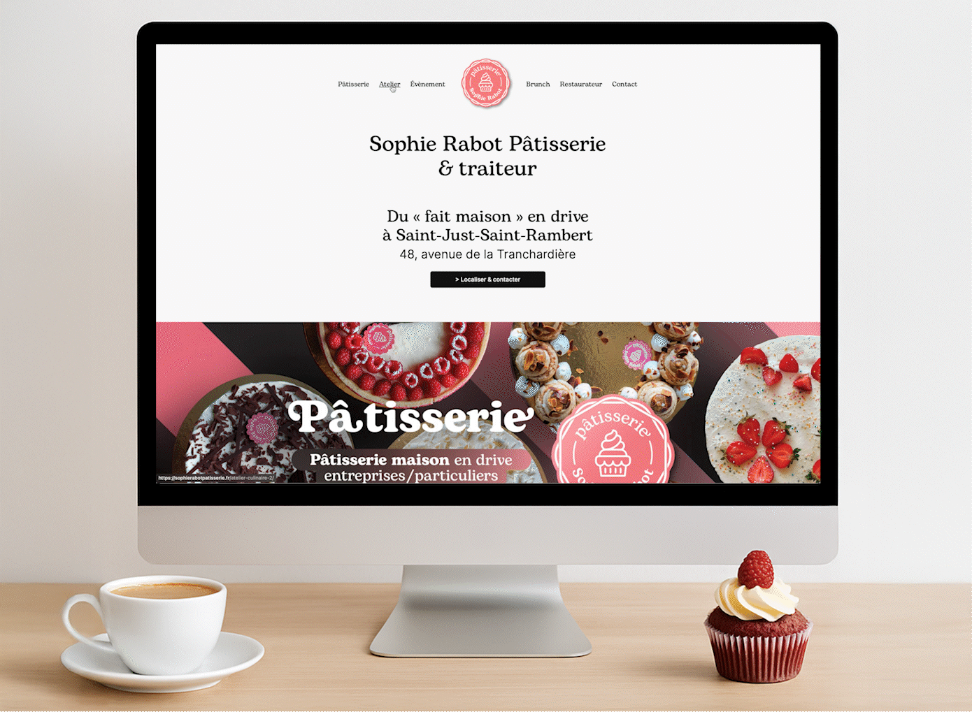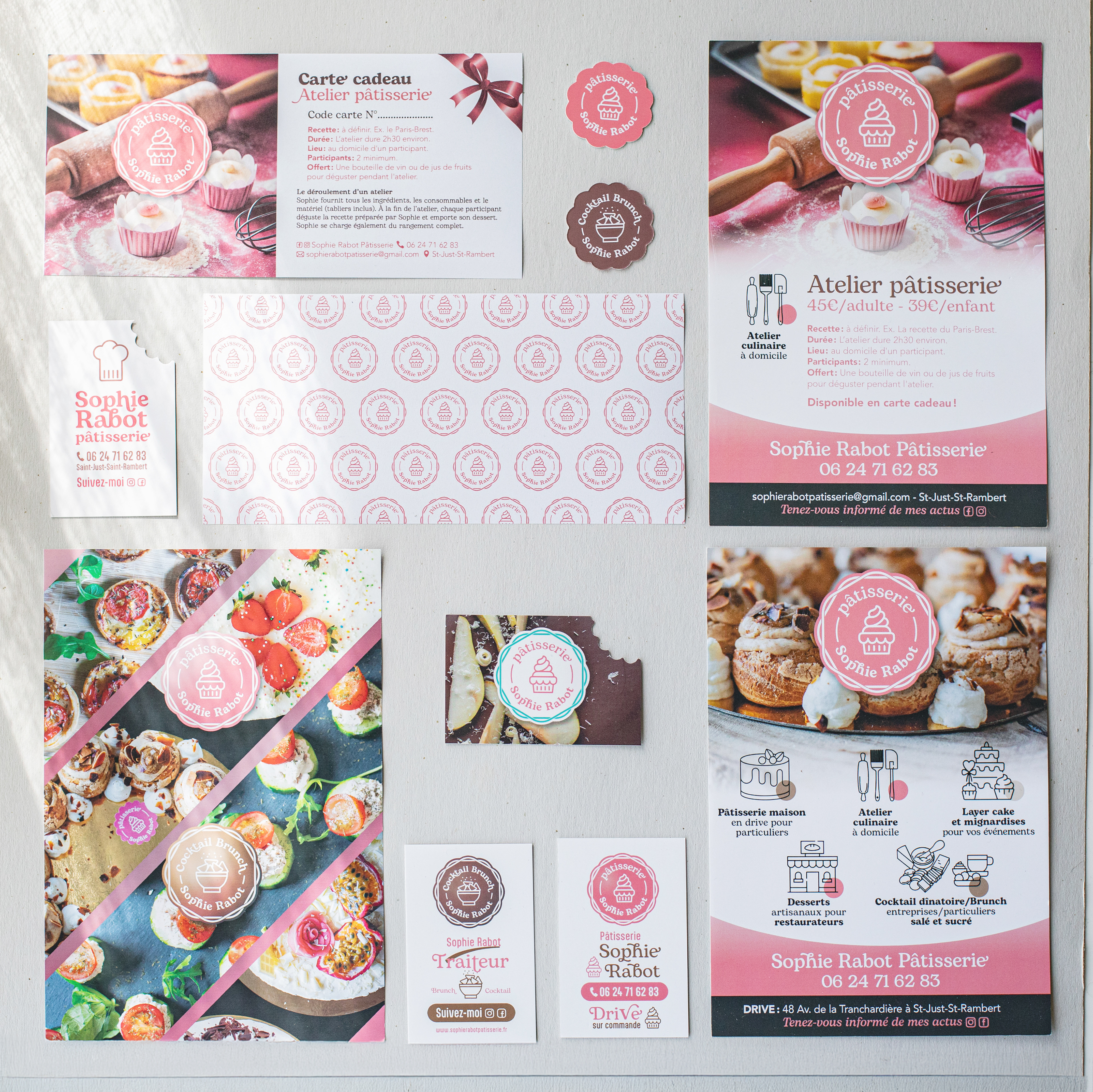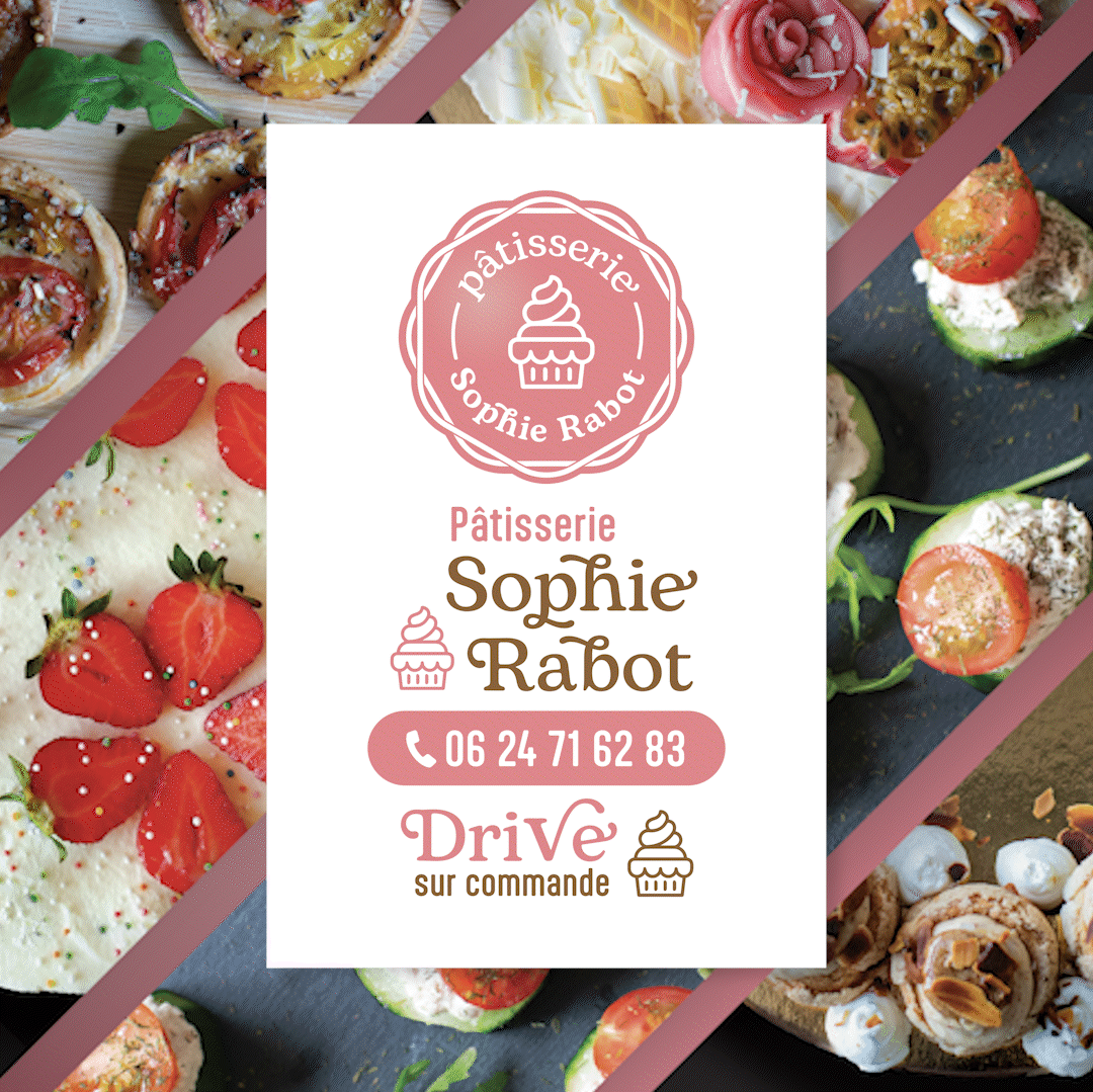 Nous avons conçu l’univers graphique de Sophie Rabot Pâtisserie, à Saint-Just-Saint-Rambert : du logo à la charte visuelle, pour traduire l’élégance et la finesse de ses créations. Ce travail associe rigueur du design et gourmandise visuelle, afin d’ancrer la marque dans un univers original et reconnaissable.